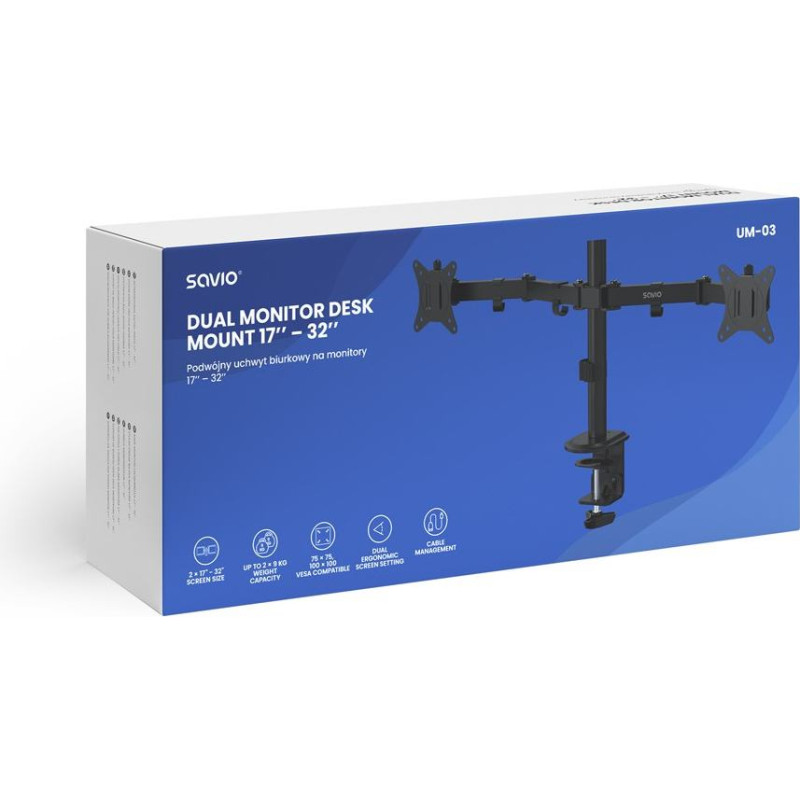Savio UM-03 Dual Desk Mount for Monitor 17″–32″