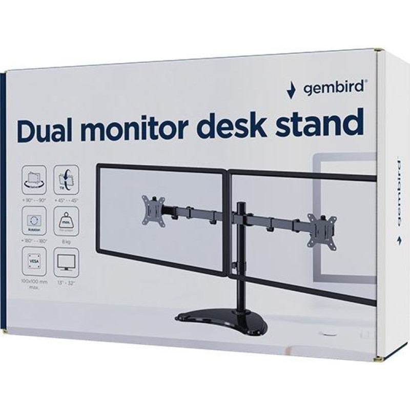 Gembird MS-D2ST-02 Monitor desk stand (rotate, tilt, swivel), 13”-32”, black
