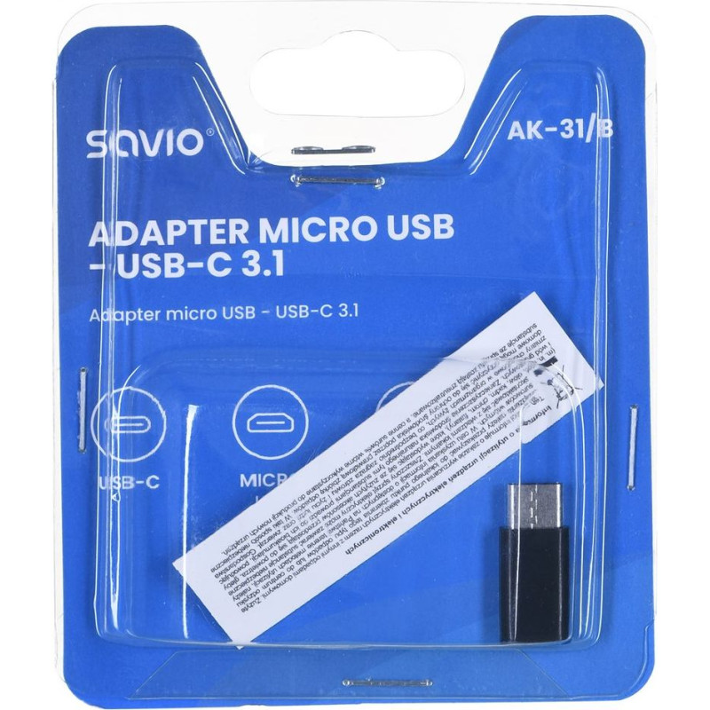 Savio AK-31 / B cable interface/gender adapter Micro USB USB 3.1 Typ C Black