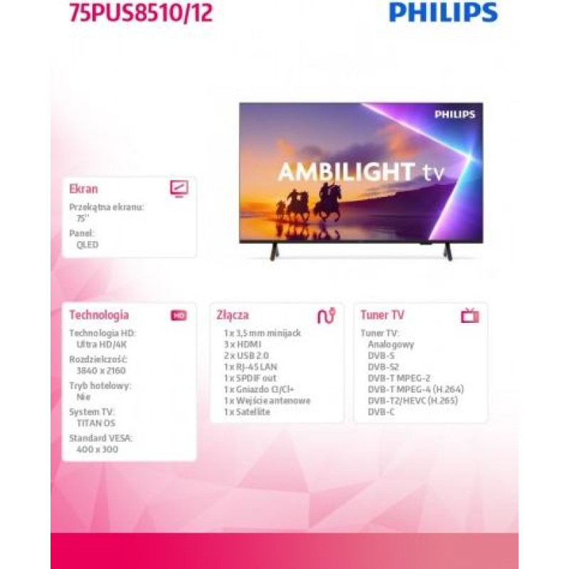 Philips TV QLED 75 INCHES 75PUS8510/12