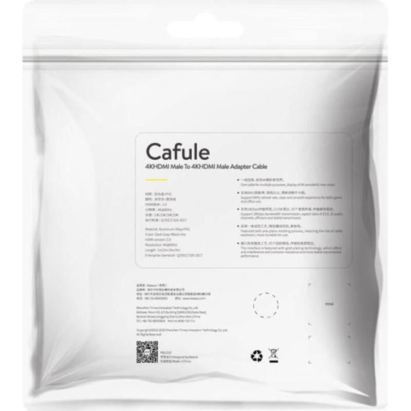 Baseus Cafule 4KHDMI Male To 4KHDMI Male Adapter Cable 5m Black