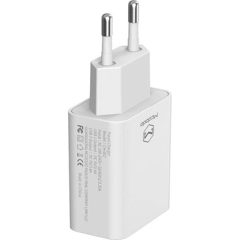 Mcdodo Dual USB charger Mcdodo CH-6720 (EU) Lightning 1m Travel set (white)