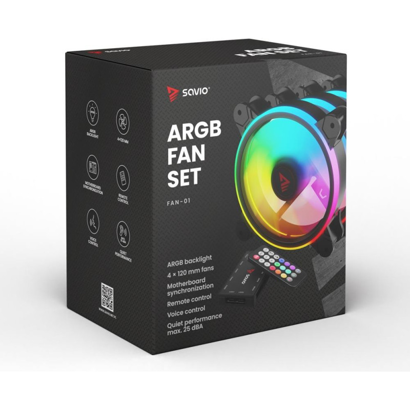 Savio FAN-01 4-pack 120mm ARGB fan including controller and remote control